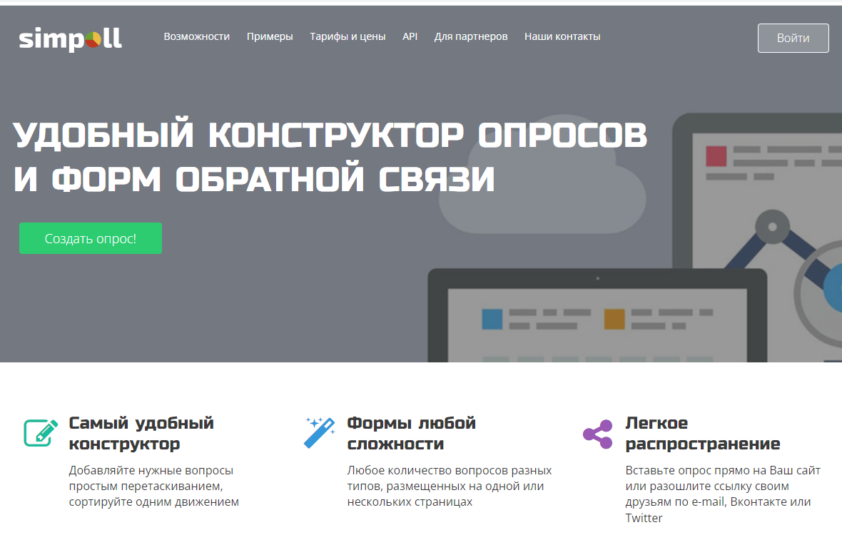 Simpoll. Онлайн-сервис для создания опросов. Есть бесплатный тариф.
