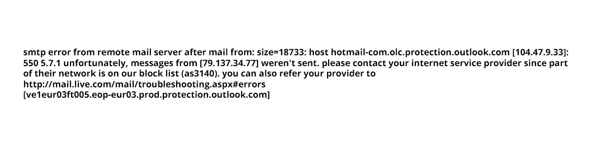 При блокировке рассылки на почтовый сервис Hotmail.com, заполните форму обратной связи. И скопируйте подробную информацию об ошибке в графу “Copy and paste any error messages”.