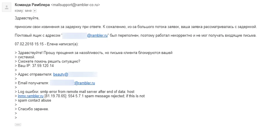 Не бойтесь обращаться в службу поддержки почтовых провайдеров.
