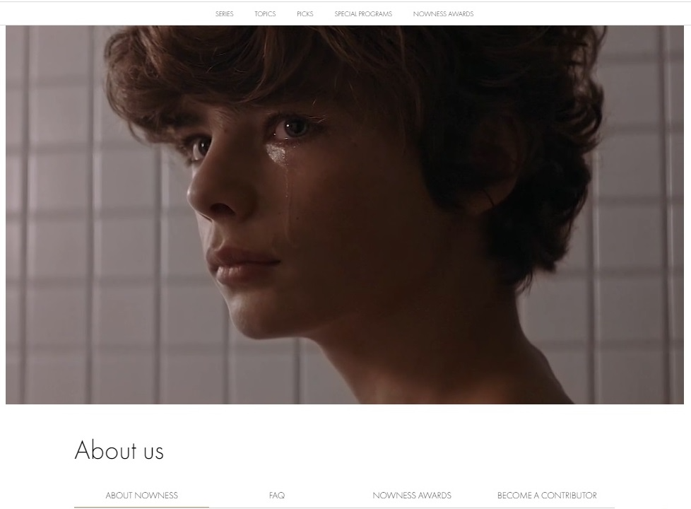 Nowness - канал ежедневных видеороликов об искусстве и дизайне, моде и красоте, музыке, культуре, еде и путешествиях. Удачное решение: чтобы информация в разделе “О нас” не выглядела длинной простыней, ее разделили на несколько вкладок.