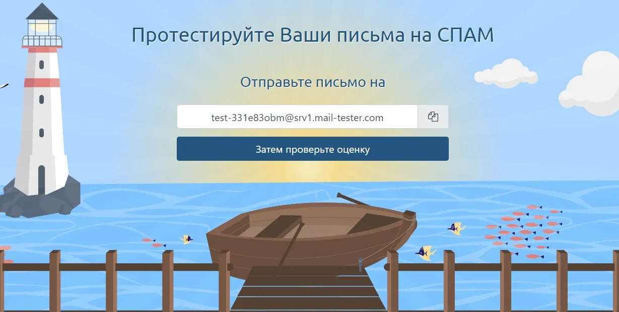 Адрес, на который необходимо отправлять письма для проверки, находится на вкладке “Последние тесты”. После отправки тестируемого письма, нажмите кнопку “Затем получите доступ к вашему результату”.