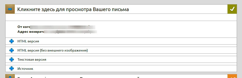 Для примера я взял одно рекламное письмо из личного почтового ящика и получил такие результаты проверки: