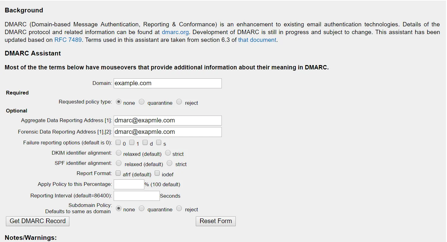 v=DMARC1; p=none; rua=dmarc@example.com; ruf=dmarc@example.com; sp=none