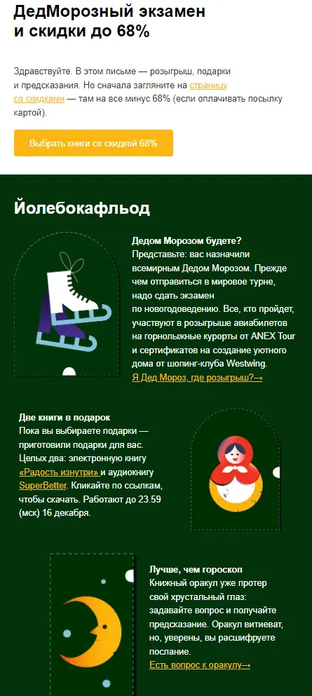 - Предпраздничные рассылки (за 2-3 недели до Нового Года).