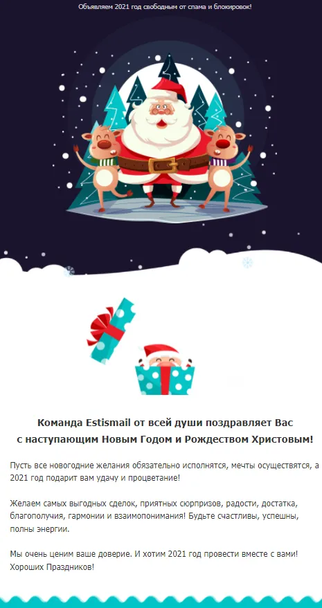 Тот факт, что люди готовы покупать не означает, что все ваши декабрьские рассылки должны быть посвящены продажам и акциям. Отправьте подписчикам поздравительное письмо с приятными пожеланиями.