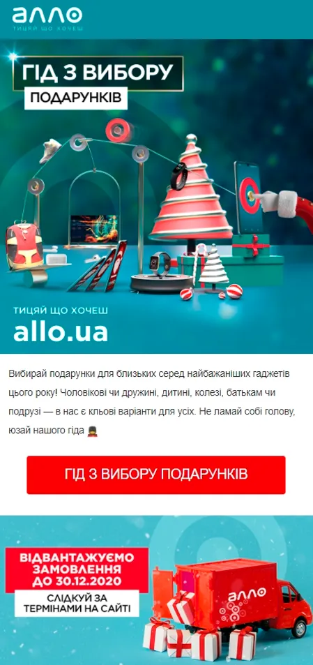 Магазин Allo предлагает покупателям воспользоваться своим гидом для поиска подарков и не ломать себе голову.