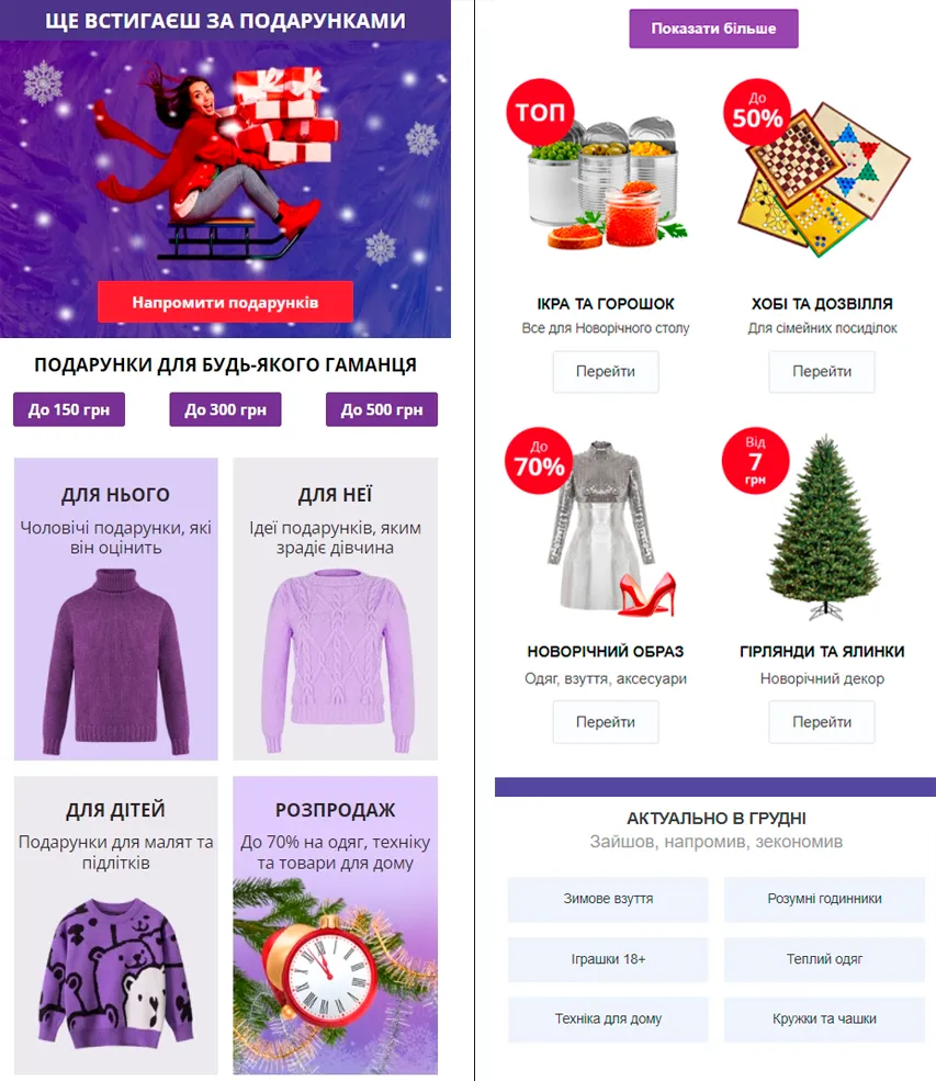 Портал Prom.ua в своем письме сделал выбор подарков очень простым и понятным.