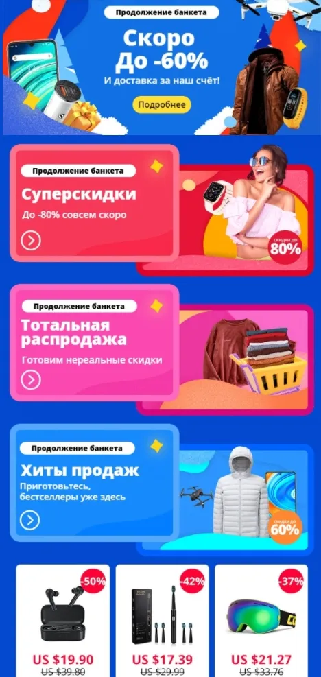 Берите пример с Aliexpress, они знают толк в распродажах.
