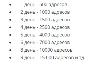 6. Постепенно наращивайте объемы. Начните с небольшого количества. Наш сервис email рассылок рекомендует прогревать домен по такому графику: