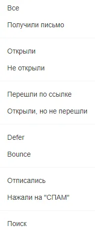 Функционал позволяет сгенерировать новый список подписчиков исходя из данных после рассылки. То есть, если к примеру, вы отправили 10 000 писем по своей группе, и 2 000 подписчиков получили но не открыли письмо, то их можно автоматически отфильтровать в отдельную группу и потом отправить еще письма.