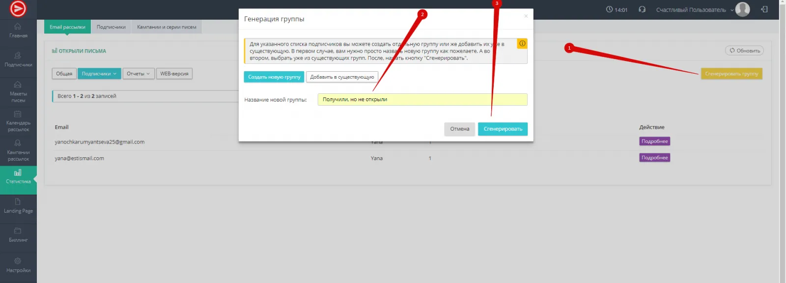 Данные функции позволяют вам более эффективно работать с вашей аудиторией подписчиков, отправлять им повторные письма.