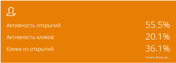 - Активность открытий - процентное соотношение подписчиков к общему количеству, которые открывали ваши письма за последние 30 дней, минимум 1 раз. Чем выше данный показатель - тем лучше. Высокий показатель говорит про хорошую активность ваших подписчиков и проявленный интерес к вашим рассылкам.